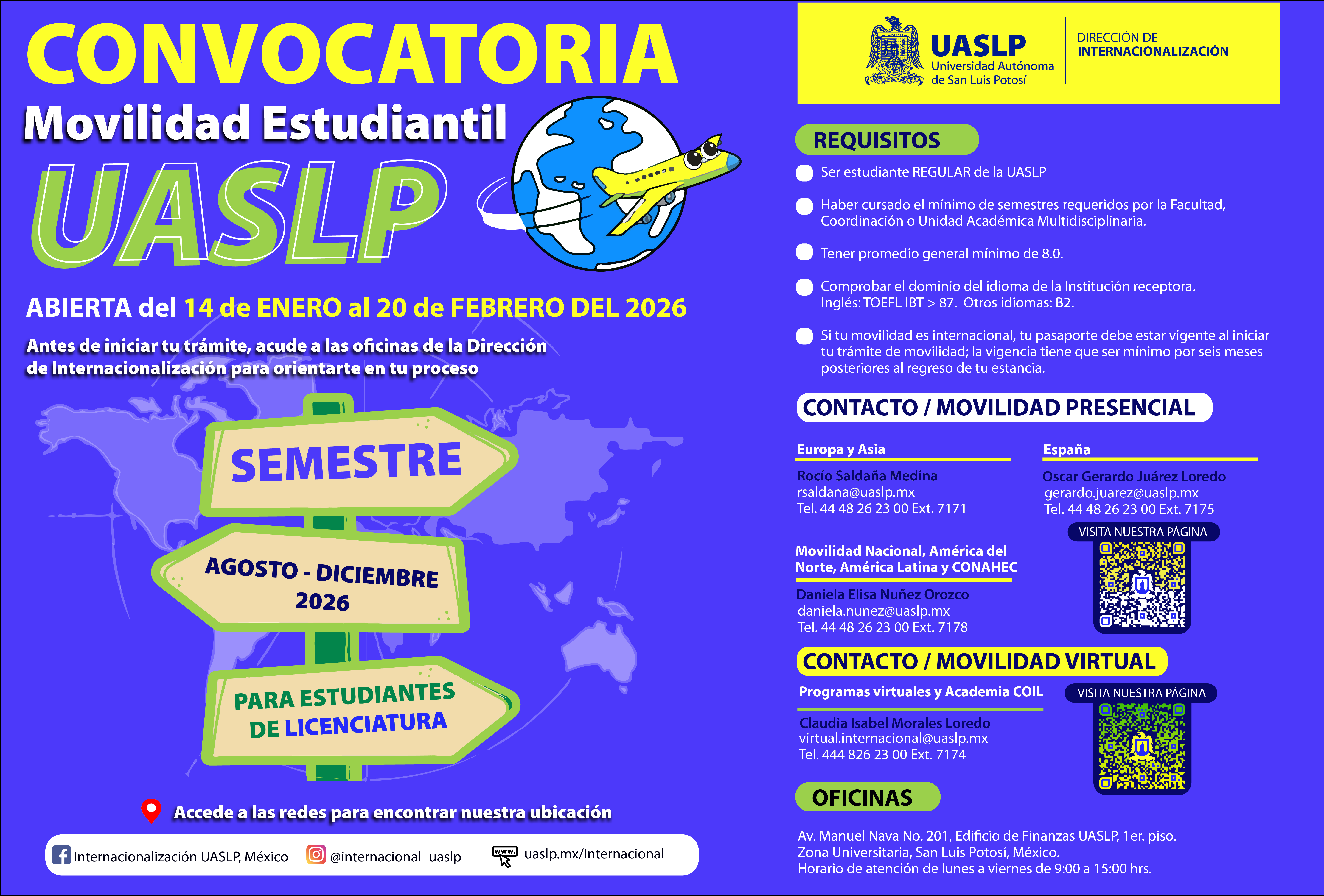 Tel. 52 (444) 826 23 00 Ext. (de acuerdo al área de tú interés)